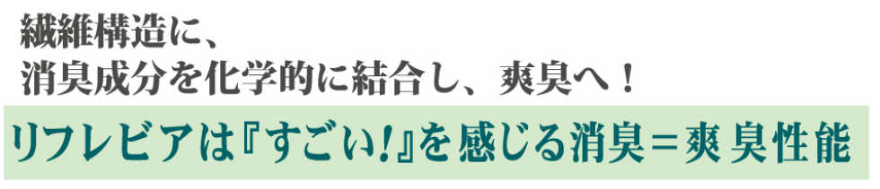 リフレビアは繊維素材に、消臭性能を持つ消臭成分がきわめて多数存在します。