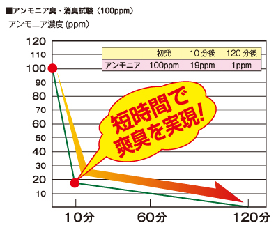 その一つひとつが、短時間に大量のアンモニア臭などを吸着。