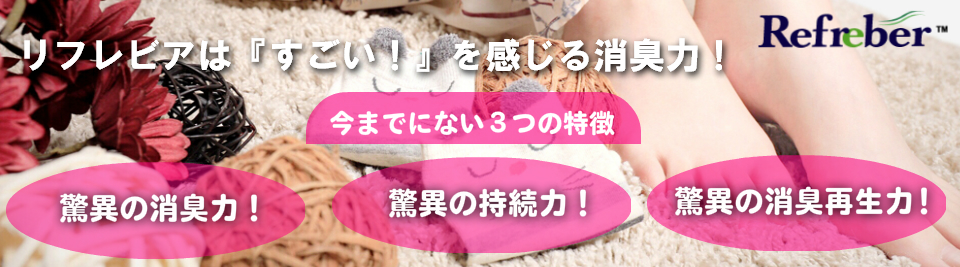 リフレビアは繊維素材に、消臭性能を持つ消臭成分がきわめて多数存在します。